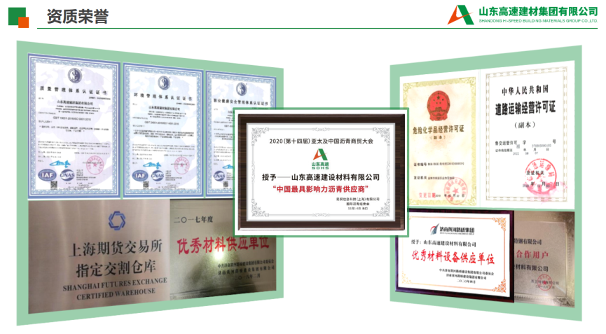 7.乐鱼手机在线官网简介:乐鱼手机在线官网简介:乐鱼手机在线官网是由山东高速集团、美国海瑞集团共同出资组建的中外合资企业,注册资本3.61亿元人民币,下辖7家权属单位。 乐鱼手机在线官网主要从事各类道路沥青的研产、储运、销售以及公路、桥梁等防水材料的生产施工,公路、港口、铁路、房建等建设材料的经营业务等。沥青乐鱼手机在线官网坚持以创新为追求,以市场为导向,以客户为核心,以价值为考量,致力于打造具有国际竞争力的世界一流建材综合服务商。作为山东省道路材料经营的龙头企业,沥青乐鱼手机在线官网在沥青市场占有率居全国同行业第一位,建有改性沥青生产线15条,拥有50万吨以上的沥青罐容、50万吨以上的钢材库容、日运力5000吨专业沥青车队及山东2家上期所石油沥青交割社会库,参与建设了华北、华东、华中、西南、西北等5个区域26余个省市的高速公路和市政道路工程;参与了阿尔及利亚东西高速、埃塞俄比亚AA高速及朝鲜平壤重点公路等项目的材料供应,为国内外公路、铁路建设做出了重要贡献。乐鱼手机在线官网将技术创新作为可持续发展的动力,与中国石油大学、山东交通学院、美国海瑞集团等开展了有效深入合作,科研创新软实力进一步增强。2008年至今,先后承担20余项交通运输部、省交通运输厅等政府部门立项科技项目,获得山东省科技进步奖、中国公路学会科学技术奖、山东公路学会科学创新奖、交通科学技术奖等政府、行业奖项共16项,参与制定行业标准、地方标准、团体标准共9项、在制定地方标准3项,授权发明专利27项、实用新型专利18项、在申请发明专利14项,拥有软件著作权9项,省级工法1项,鉴定科技成果18项,发表学术论文18篇,获批一个集团级科研平台--沥青新材料研发平台,科技创新成效初显。